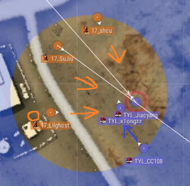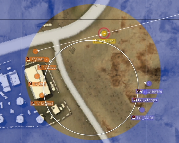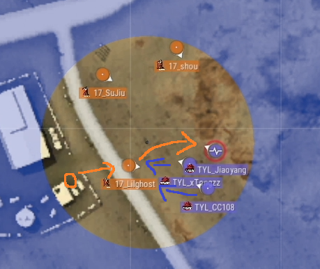 そして、フェーズ8に入る瞬間にTianba最後の1人 Cui71がTYL側の丘にある岩に移動します。