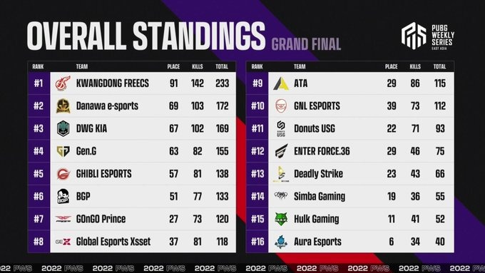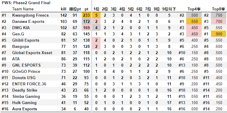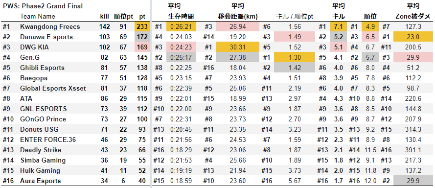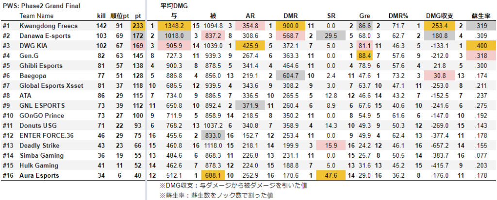 【大会データ】2022 PWS: Phase2 Grand Final データまとめ【PUBG】
