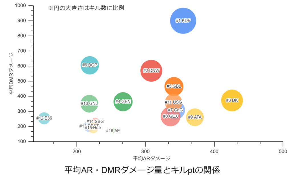 KDFがとんでもないDMRダメージをしてます。同じようにDNW、BGPもDMRがARよりかなり高いダメージを出しています。