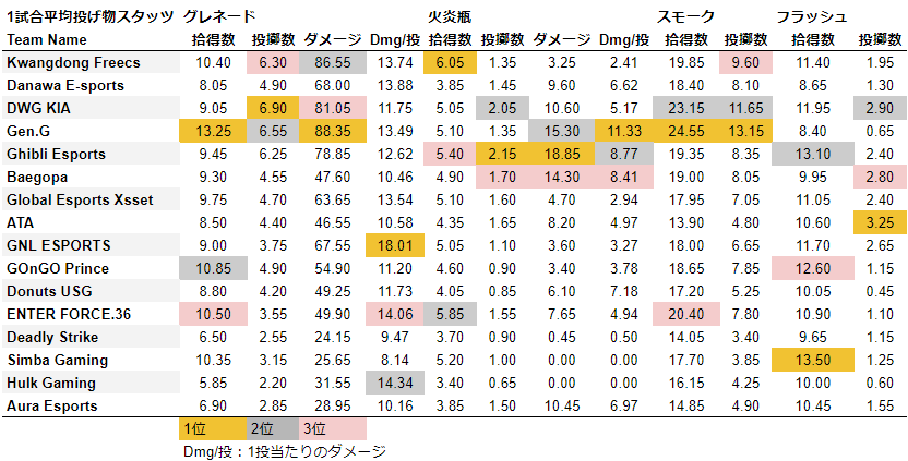USGは韓国中堅チームと同等のダメージを出せていたのに対して、E36はどのチームよりも与ダメージが低くなっています。