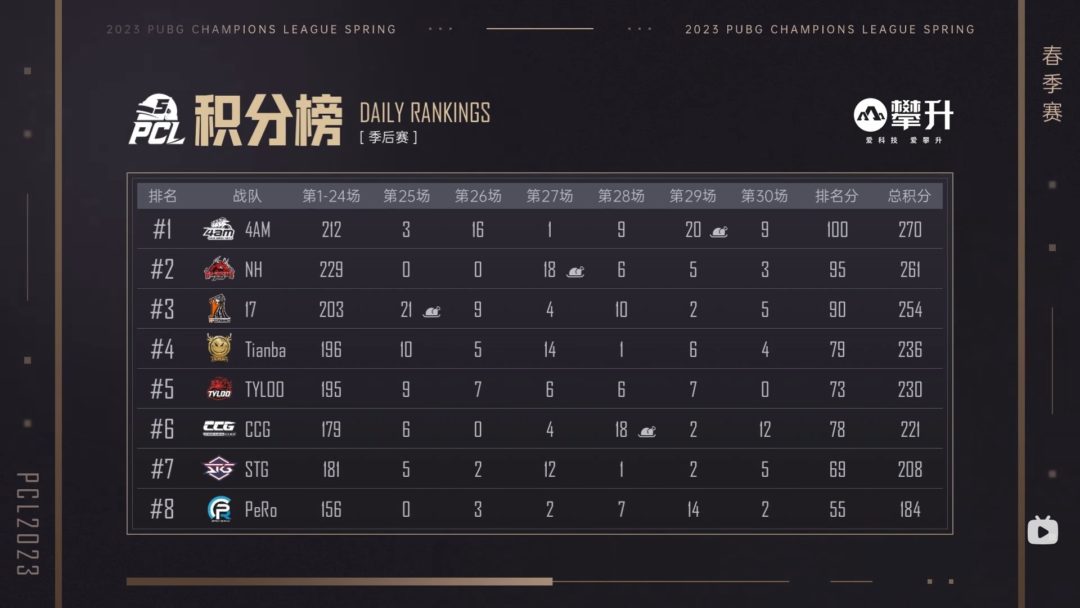 【大会データ】PCL 2023 Spring Grand Finals 大会結果【PUBG】 2023年 X Facebook はてブ LINE コピー2023.04.092023.04.19スポンサーリンク 2022 PWS : Phase 2 Weekly Survival KR Week1 試合結果&データ【PUBG大会データ保管庫】 2022.07.232022.10.08 【大会結果】PUBG NATIONS CUP 2023│ PNC 2023【PUBG】 2023.09.20 PGC観戦記 Week3 Weekly Final Day2 【PUBG】 2021.12.162022.10.08 今回は PCL 2023 Spring Grand Finals の結果をまとめました。目次得点表順位表MatchスタッツMapごとの得点累計ptグラフ生存スタッツ各順位獲得回数生存時間、移動距離ダメージスタッツ各ダメージダメージ内訳個人表彰投擲物スタッツ終わり得点表順位表MatchスタッツMapごとの得点累計ptグラフ生存スタッツ各順位獲得回数生存時間、移動距離ダメージスタッツ各ダメージダメージ内訳個人表彰投擲物スタッツ終わりここまで見ていただきありがとうございます。データはtwire様のものを使用しています。