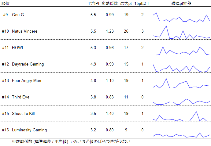 各チームのポイント推移