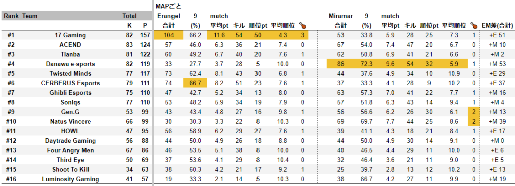 Mapごとの得点
