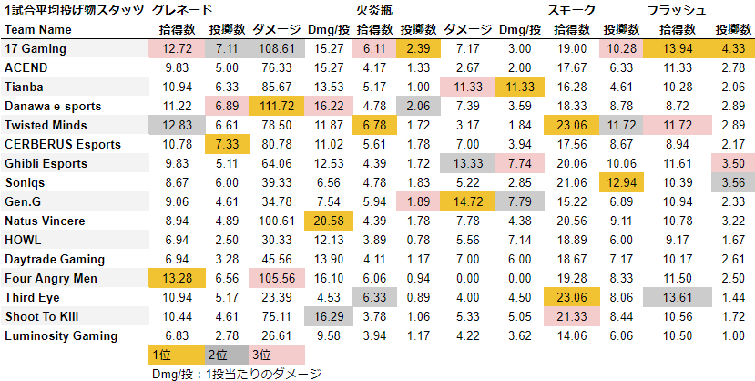 投擲物スタッツ