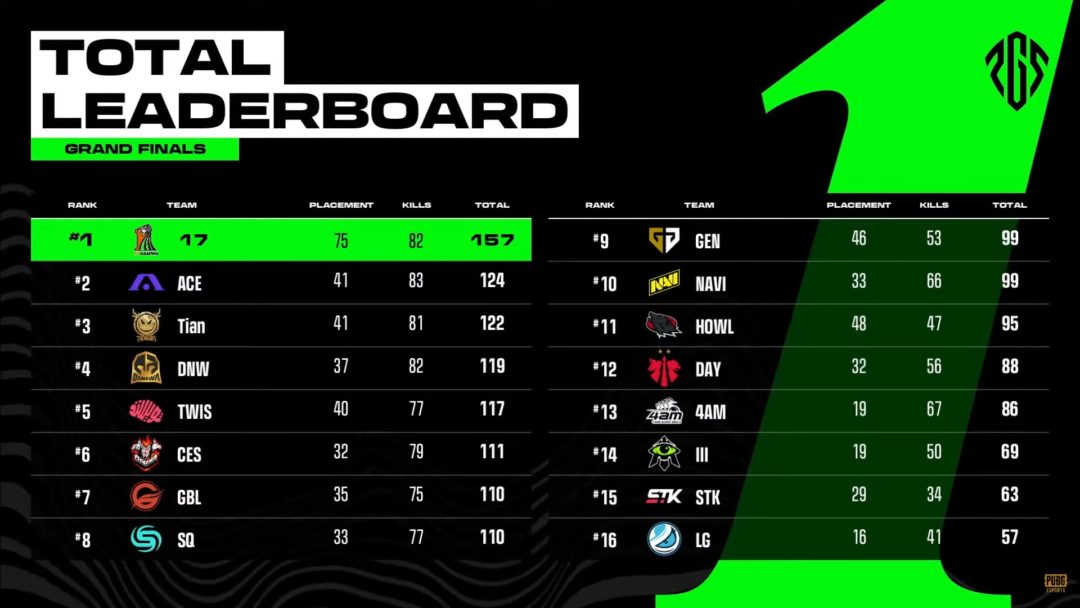 17 Gamingは昨年のPGC 2023で惜しくも2位と悔しい思いをしていましたが、最短で昨年の悔しさを晴らす結果となりました。また、17 Gamingは国際大会では初優勝、Tier-A以上の大会でも5年ぶりの優勝で、念願の優勝がついに叶いました。