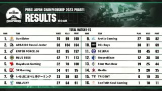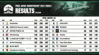 2023年【大会データ】 PJC 2023 Phase1 Week3 データまとめ【PUBG】 Week1~Week3を含めた順位今回は昨日終了した PUBG JAPAN CHAMPIONSHIP 2023 Phase 1 Week3のデータをまとめました。PJC 2023 Phase1は見事 SunSisterが優勝を果たし、PGS... 2023.03.202023年PJCPUBG大会結果日本