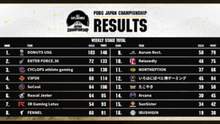 2022年PJC2022 Phase2 Weekly Stage データまとめ【PUBGデータ保管庫】 今回はPJC 2022 Phase2 Weekly Stageのデータをまとめました。2週間で30試合が行われ、GFへ進出する12チームとLower Bracketに行く4チームが決まりました。今週末(7/8~7/10)行われる、Lower... 2022.07.062022年PJCPUBG大会結果日本